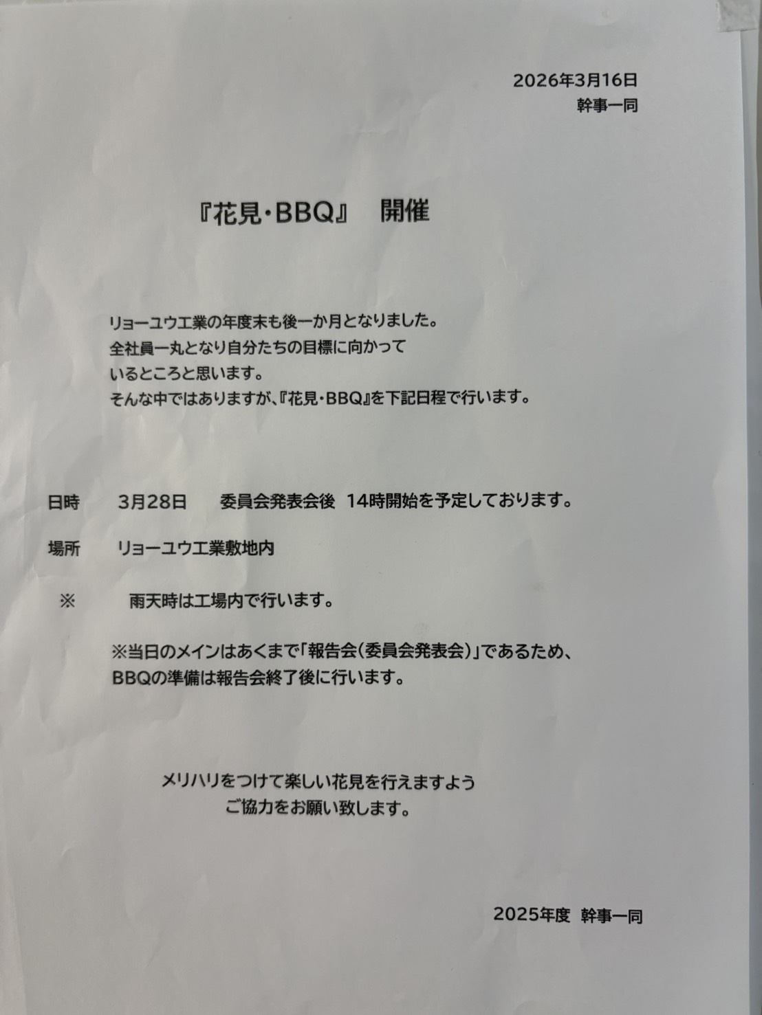 春の訪れと共に幹事が行事を企画してくれました。