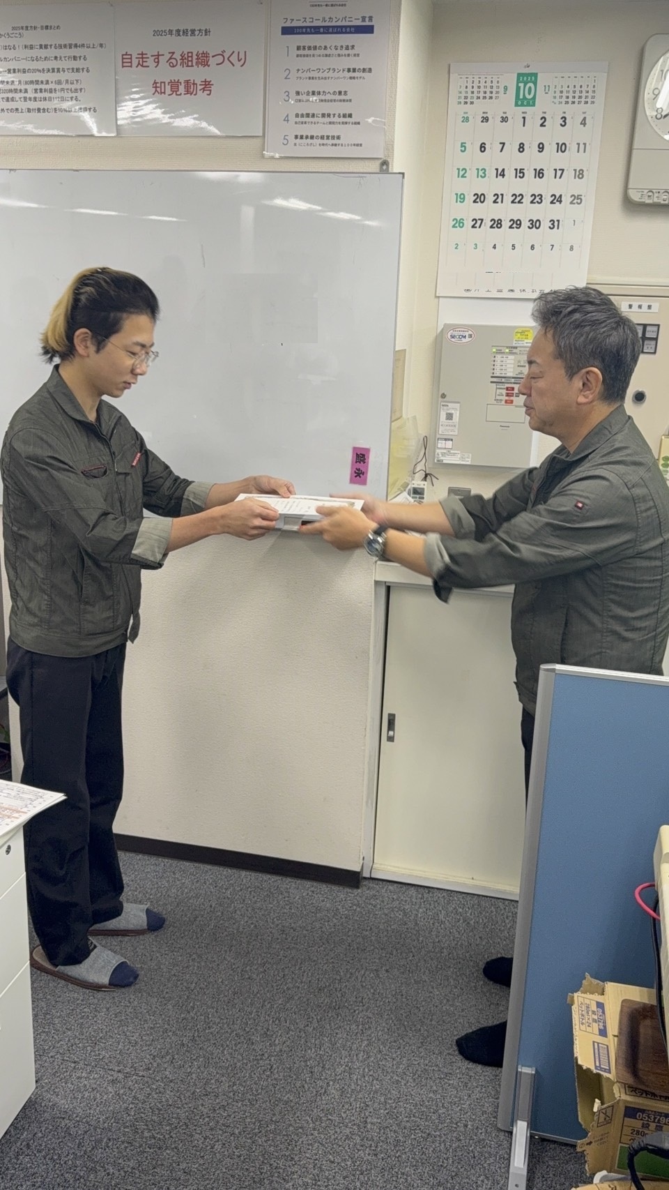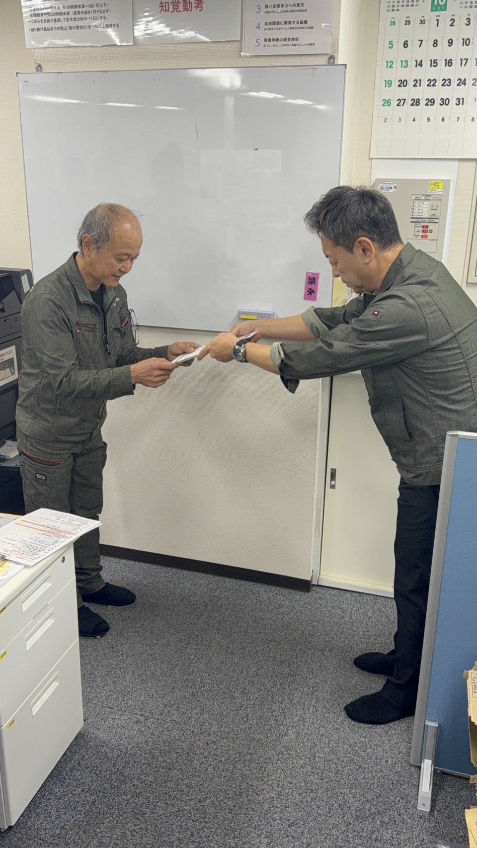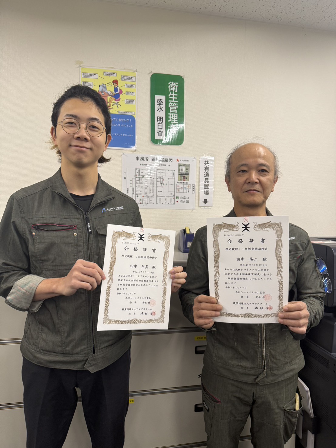 毎年、受けている『板金図面検定』で今年も1級を2名が合格されました。